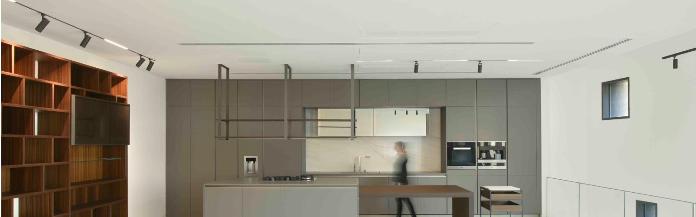 یک خانه مسکونی مدرن، لوکس و چند طبقهای که بیشتر با چراغهای مدرن و پیشرفته از محصولات ما تجهیز شده است. خانواده چراغهای بدون خیرگی دارکلانس، در اتاق نشیمن، فضایی آرام و مناسب برای استراحت و تماشای فیلم ایجاد میکنند. همچنین، پروفیلهای کراب به همراه چراغهای سیرا 1616 و فلکا مینی به شیوهای مدرن و جذاب در این خانه نصب شدهاند.